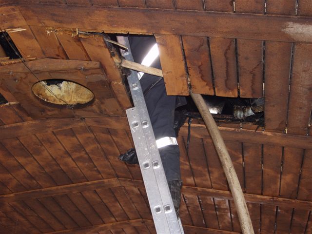 Wirtschaftsgeb�udebrand noch Glutnester, die durch die