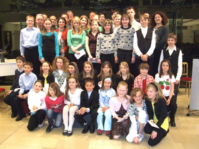 Preisträgerkonzert der Musikschule Fohnsdorf im Schloss GabelhofenDie Fohnsdorfer Musikschule feiert Jahr für Jahr tolle Erfolge beim Musikwettbewerb „Prima la Musica“. Dieses Jahr gab es von 38 TeilnehmerInnen an diesem Wettbewerb 37 PreisträgerInnen zu feiern. In einem ausgezeichneten Konzert im wunderschönen Ambiente des Schloss Gabelhofen präsentierten sich die erfolgreichen Musikschüler mit dem Preisträgerkonzert der Öffentlichkeit.38 SchülerInnen wurden im heurigen Jahr von Alexandra Rappitsch, Daniela Podmenik, Julia Pantelyat, Dir. Peter Vorraber, Gerhard Bucher, Helmut Leitinger, Dimitrij Manelis, Hubert Sittlinger, Josef Bruckmoser und Johann Parlier auf die Wertungsspiele beim Bewerb „Prima la Musica „ in Graz vorbereitet. Und die Erfolge waren kaum zu übertreffen. 13 TeilnehmerInnen erreichten erste Plätze mit Berechtigung zum Bundeswettbewerb in Innsbruck, 5 TeilnehmerInnen erhielten erste Preise ohne Berechtigung zum Bundeswettbewerb. für 10 TeilnehmerInnen gab es zweite Preise und für 5 TeilnehmerInnen der Musikschule Fohnsdorf 3. Preise. Mit Erfolg hat ein Kind am Landesbewerb in Graz teilgenommen. Beim Preisträgerkonzert im Schloss Gabelhofen zeigten die TeilnehmerInnen beachtliches Können. MDir. Peter Vorraber: „Mit ihren Leistungen beim Bewerb Prima la Musica stießen die SchülerInnen der Musikschule Fohnsdorf an die spitze vor und das nicht nur in der Quantität, sondern vor allem in der Qualität“. Geschenke und Lobesworte für die erfolgreichen TeilnehmerInnen gab es auch von Kulturreferenten GVM Franz Lipus seitens der Gemeinde Fohnsdorf. Sabine Neuhold und Anna Schmalzmeier dankten im Namen des Elternvereines der Musikschule Fohnsdorf. Ehrungen und Dank gab es auch für die Musikpädagogen, die durch ihre hervorragende Ausbildung wesentlich zum Erfolg beitragen. ![]() Die erfolgreichen TeilnehmerInnen der Musikschule Fohnsdorf zeigten beim Preisträgerkonzert im Schloss Gabelhofen ihr Können. Am Bild die TeilnehmerInnen mit den Musikpädagogen und Kulturreferent GVM Franz Lipus |