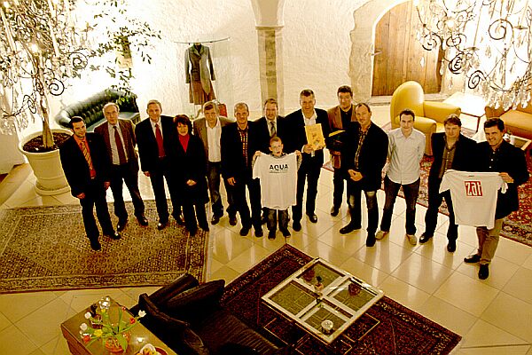 gegen die Leukämie10.000 Euro helfen kranken KindernDie Aktion „Fußball im Kampf gegen die Leukämie“ läuft seit 2 Jahren. Über Initiative des Sportvereines AT&S Techmo Fohnsdorf und Peter Harrer wurde kürzlich zum Galaabend in das Hotel Schloss Gabelhofen geladen und eine Zwischenbilanz gezogen. Im Rahmen dieser Aktion haben steirische Fußballvereine sowie das Schiedsrichterkollegium durch zahlreiche Veranstaltungen bereits mehr als 10.000 Euro zusammengebracht.„ Diese Summe soll kranken Kindern ihre Leoden ein wenig lindern und kommen der Steirischen Kinderkrebshilfe zur Verfügung gestellt werden“, so Peter Harrer. Gleichzeitig gab es auch Präsente für die teilnehmenden Vereine und Schiedsrichter. So erhielt Rapid Kapfenberg eine Garnitur Dressen, bei den Schiedsrichtern fiel das Los auf Rudolf Schrittwieser (Staffel Mürz) und Herbert Wölfler (Staffel Mur). die beiden Schiedsrichter konnten sich über Gutscheine für ein Thermenwochenende freuen. Neben dem Obmann der Kinderkrebshilfe, Dr. Stephan Moser, waren auch Vertreter der steirischen Vereine wie KSV Präsident Fuchs oder der Fohnsdorfer Bürgermeister Johann Straner anwesend. Die Aktion „Fußball im Kampf gegen Leukämie“ wird wegen des großen Erfolgens jedenfalls weitergeführt und soll auch in Zukunft Kindern Hilfe bringen. ![]() Beim Galaabend „Fußball im Kampf gegen die Leukämie“ im Hotel Schloss Gabelhofen in Fohnsdorf wurden mehr als 10.000 Euro als Zwischenbilanz präsentiert. Am Foto die Vertreter der teilnehmenden Vereine und des steirischen Schiedsrichterkollegiums sowie Sponsoren dieser großartigen Aktion. (Foto Fritz Meyer) |