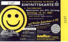 Einige Kommentatoren und -innen sprachen von einem Zeltfest, das hielt aber einige tausend Besucher nicht davon ab, sich doch bis spät in die Nachtstunden zu amüsieren (selbst die Kritiker)! Die schwarz-weiße Dekoration an der Decke (farblich perfekt auf den schwarzen Asphaltboden abgestimmt) gab einem jedoch oft das Gefühl - ja, dunkle Wolken ziehen auf, jetzt kommt das Gewitter! Was sich im Laufe des Abends als recht treffende Metapher erwies! Dabei gibts schon seit meiner Jugend Farbfernsehen! Ein paar Farbtupfer, die nicht wie: "Vorsicht, Radioaktivität" aussehen wären da ganz angebracht gewesen. Auch an den Bars gabs einige Engpässe, die gabs aber zeitweise noch bei jedem Ball - auch wenn sich da einiges besser hätte organisieren lassen. Als ehemaliger Mitveranstalter eines Maturaballs muss ich dazu allerdings sagen: im Nachhinein weiß man es immer besser! Aber wie gesagt, auch um 2 Uhr morgens war der Saal noch gut gefüllt, Schachner & Co heizten auf der Tanzfläche ein (leider nicht auf dem Weg zur Toilette), und auch die Disco war immer gut gefüllt! Aber bei ein paar Getränken und den richtigen Leuten fühlt man sich gleich wohl! Zu Mitternacht gabs dann eine recht brauchbare Mitternachtseinlage (zur Eröffnung natürlich eine schöne Polonaise), und so um halb 2 die große Verlosung! Der Hauptpreis, ein Skoda Fabia ging nach Knittelfeld! Preisverdächtig war dann auch die Garderoben(des)organisation (vor allem zum Schluss hin)! Als man kam, brauchte man wenigstens nur eine halbe Stunde von der Garderobe bis zum Ballsaal. Wenn man da neben einer hübschen Dame stand, wars Warten halb so schwer. Wer später kam (das "kam" bezieht sich jetzt auf "zur Garderobe" und nicht auf die "Dame"), dessen Jacke wurde nur noch angenommen - ohne Nummer ("Nummer" bezieht sich auf die Jacke)! Wer dann ab späterer Stunde seine Jacke wiederbekommen wollte erlebte nur noch Chaos! Auch nach langjährigen Ballstudien war das etwas Neues für mich! Dass man so ab 6 Uhr seine Jacke selbst suchen muss, ist relativ normal. Hier jedoch fühlte sich anscheinend schon um 3 niemand mehr für die Garderobe zuständig, hunderte Kleidungsstücke hingen noch herum (viele auch nicht mehr ...), mussten selbst gesucht werden (haben sie schon einmal 50 Leute beobachtet, die verzweifelt Ihre Kleidung suchen - gut dass wenigsten draußen ein laues Lüfterl wehte ...), die Garderobenständer brachen teilweise zusammen, selbst Streitereien gab es darum - und zu schlechter Letzt wurde sogar die Gendarmerie angefordert! Das war dann leider ein recht ruhmloser Abschluss eines gar nicht ganz so schlechten Balls! Es gab sicher mehr Besucher als im vergangen Jahr - und doch hatte der Vorjahresball in der Tennishalle in Zeltweg etwas mehr Flair! (liebe Organisatoren des vorjährigen Balls: irgendwann wirds sicher vielleicht auch zu eurem Ball einen Bericht geben!) Trotz allem aber natürlich Gratulation an die Absolventen, die doch sehr viel Zeit und Energie für die Organisation aufgewandt haben! Alte Menschen wie ich haben eben immer etwas zu meckern ... (PS: der Bericht wurde großteils um 6 Uhr morgens nach dem Ball verfasst und ist ziemlich wohlwollend!) (PPS: wer mit seinem Gewinnlos gewinnlos nachhause ging kann angeblich in der Murtaler Zeitung nachlesen, ob er gewonnen hat. Gerüchteweise gibts vor allem noch viele Kleidungsstücke zu gewinnen!) (3PS: Aber die Maturazeitung, die SmilePost